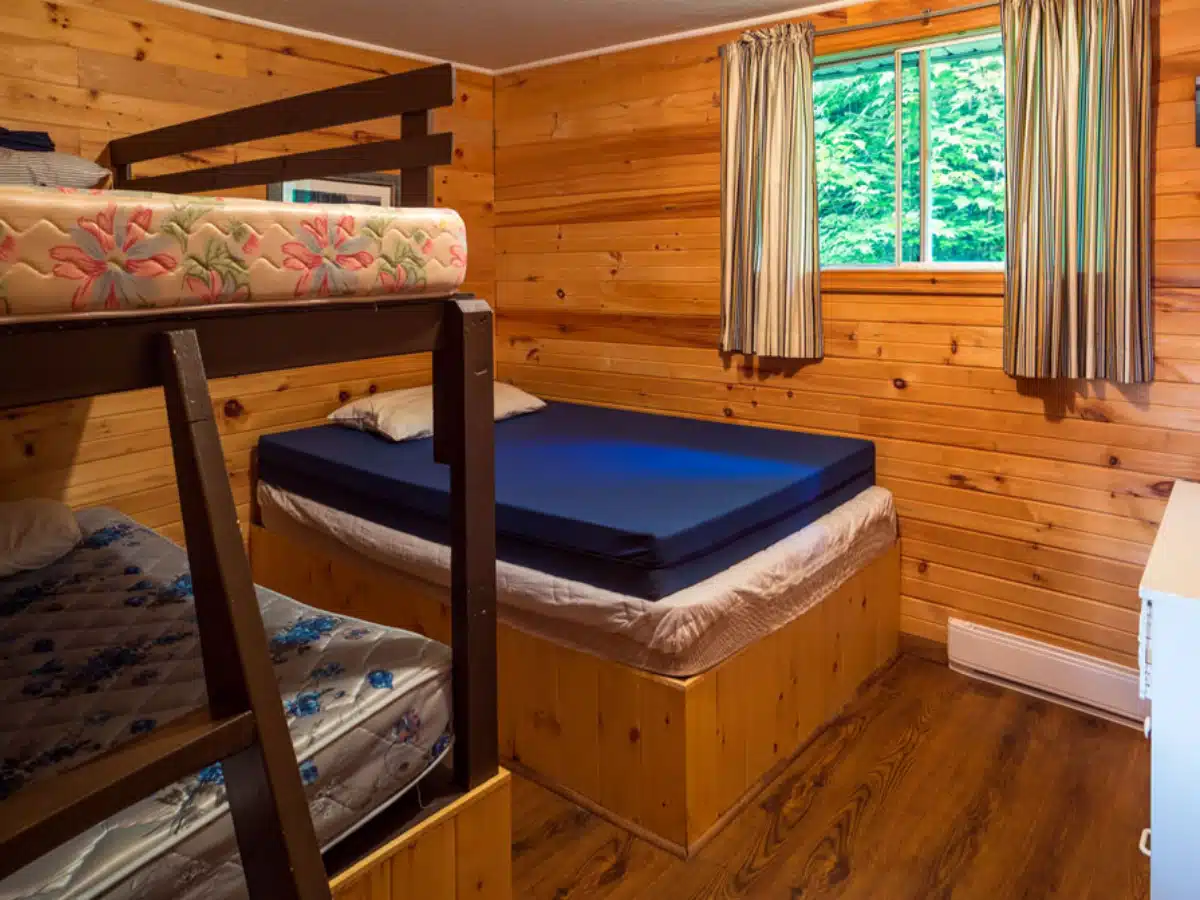 Situé proche du lac avec un quai indépendant, peux coucher 7 à 8 personnes. Équipé d’une grande cuisine complète avec 1 réfrigérateurs et 2 chambres à coucher, donc une avec 4 lits superposés simple et l’autre avec 2 lits simple superposés et un lit Queen.